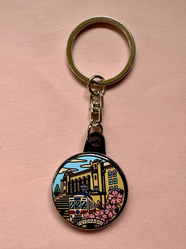23201愛知県・豊橋市 豊橋市公会堂と路面電車 国の登録有形文化財「豊橋市公会堂」を背景に、1925年から市電の愛称で親しまれている「路面電車」と市の花である「ツツジ」がデザインされています。 #マンホールグッズ倶楽部 32㎜キーホルダーです 32mmキーホルダー #マンホール #マンホールグッズ #マンホールキーホルダー #缶キーホルダー #キーホルダー #マンホールグッズ倶楽部