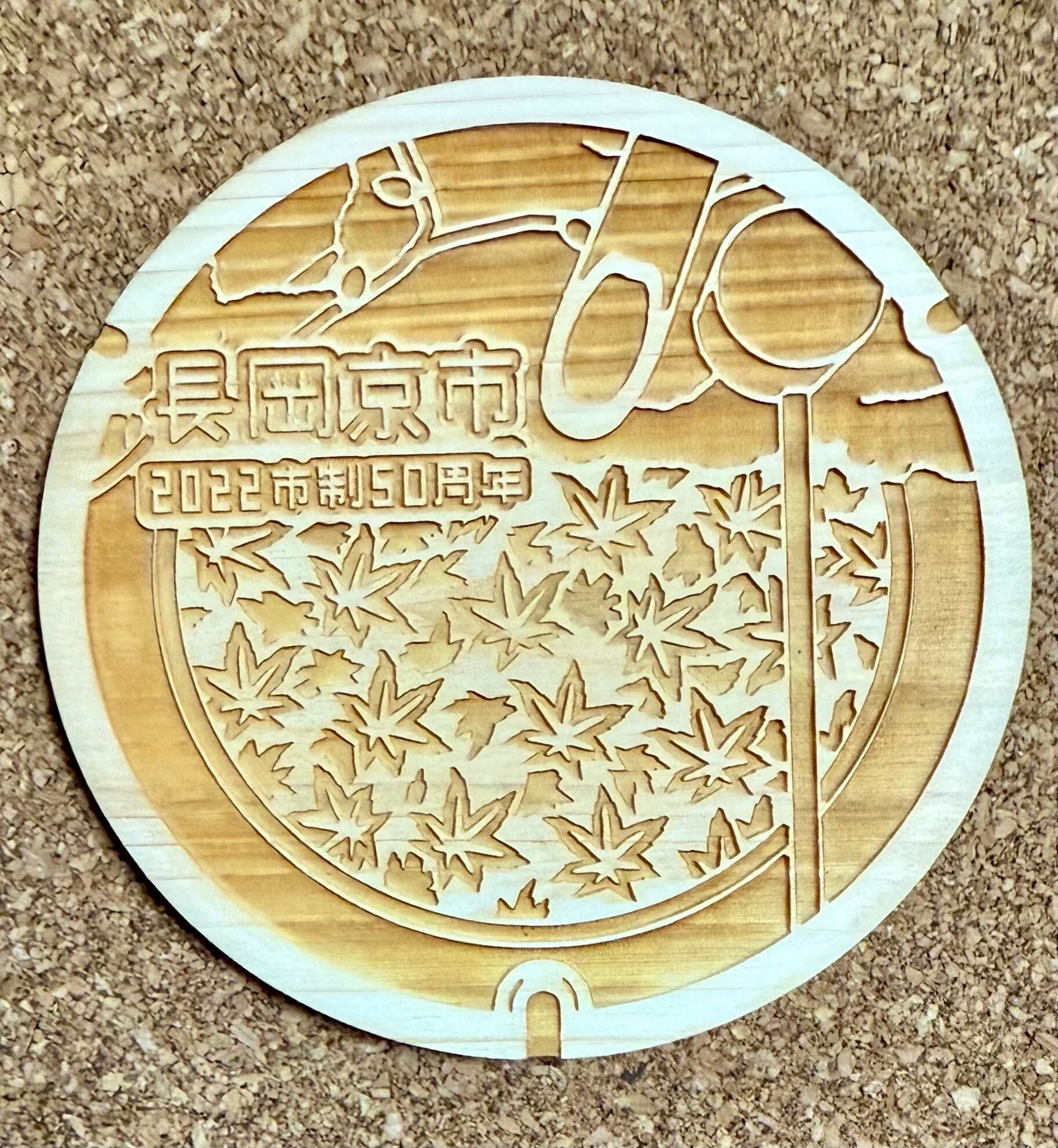 京都発京都産檜材に京都の工場でレーザー加工をおこなって作品に仕上げました