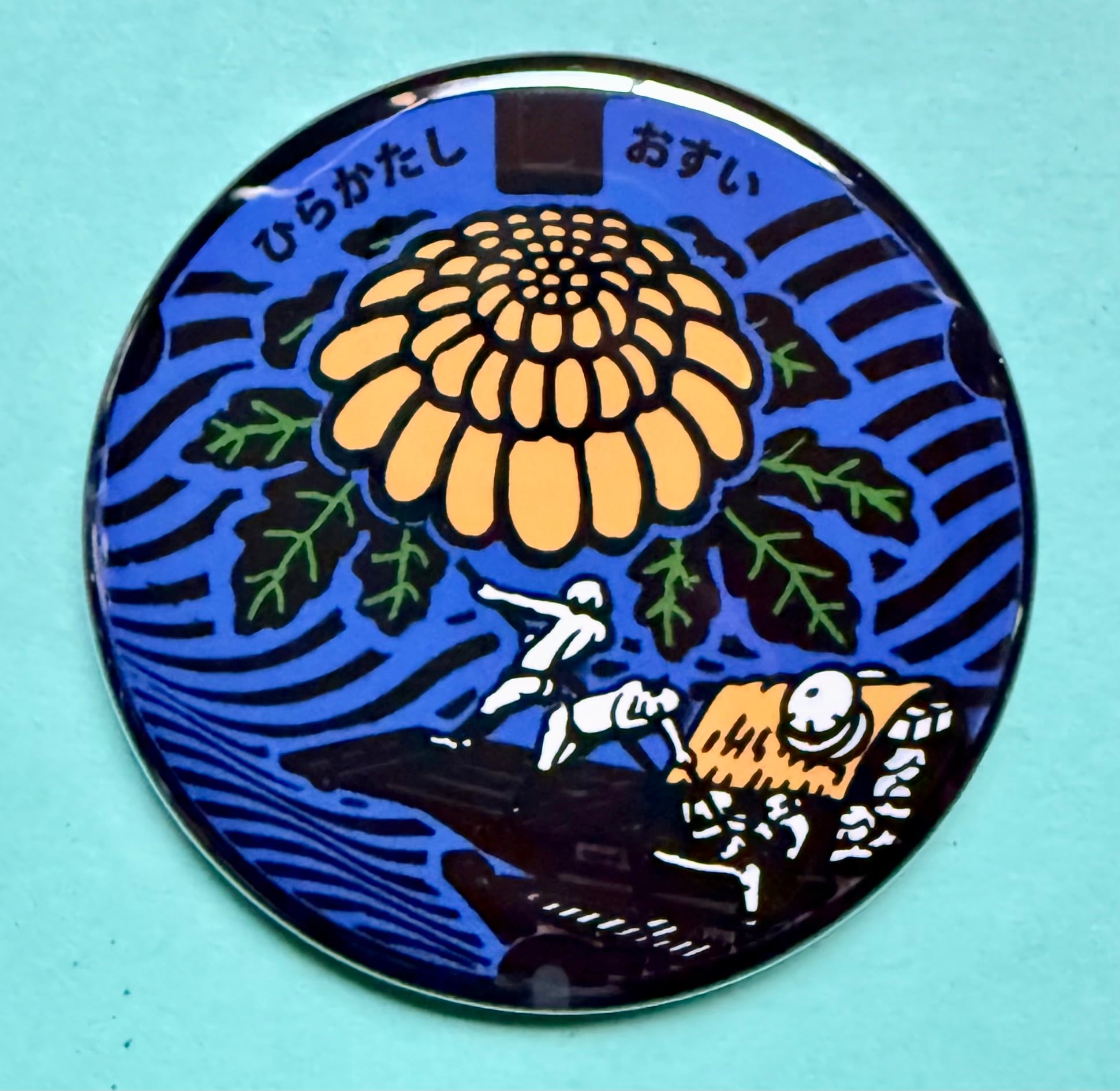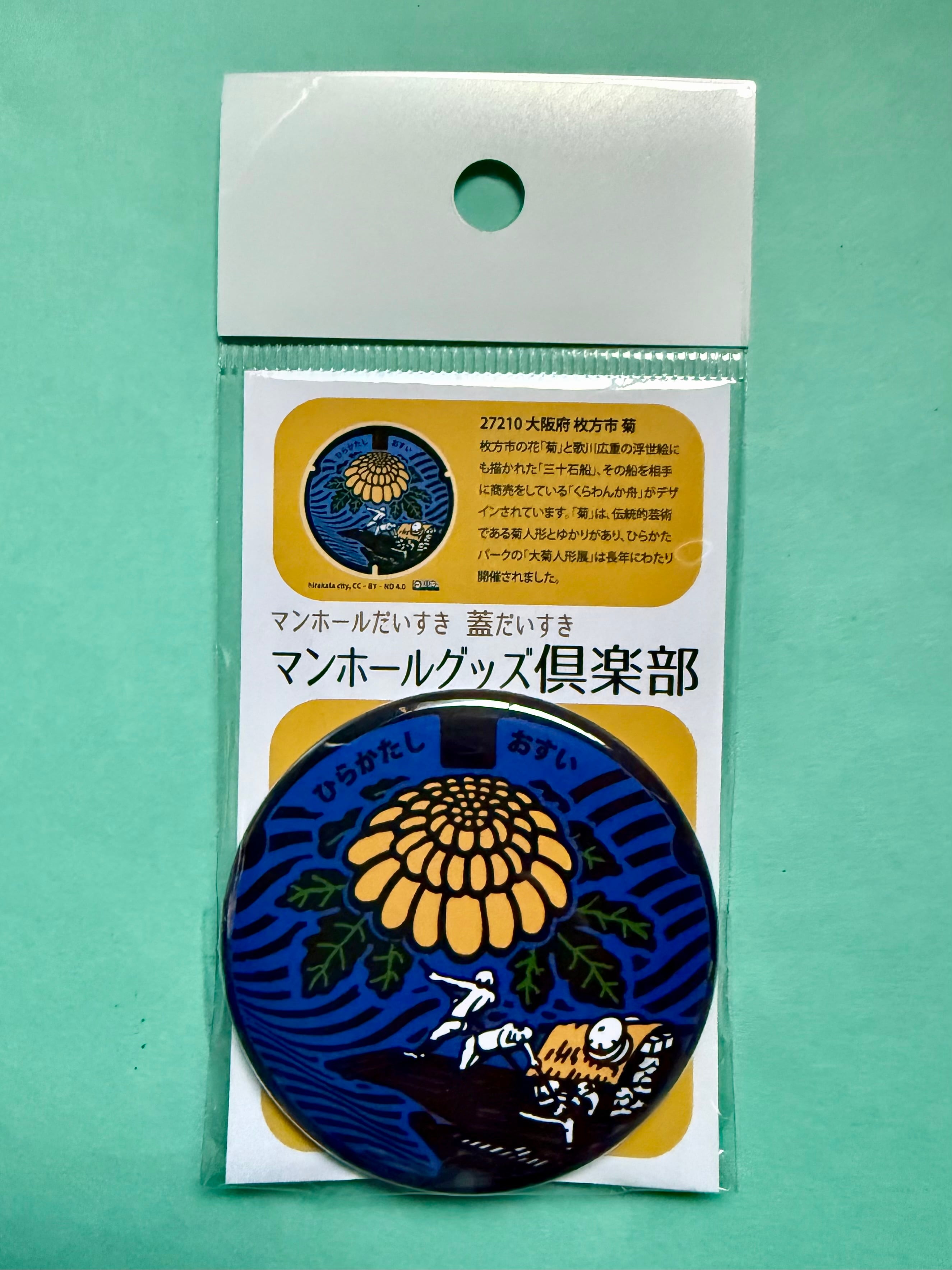 毎年ご購入いただいているお客様、初めてお目にするマンホールグッズ倶楽部のお客様、お待たせしました!伝統と魅力が詰まったマグネットが新たに完成しました。この商品は、枚方市の花「菊」と、歌川広重の浮世絵にも描かれた「三十石船」をテーマにしています。