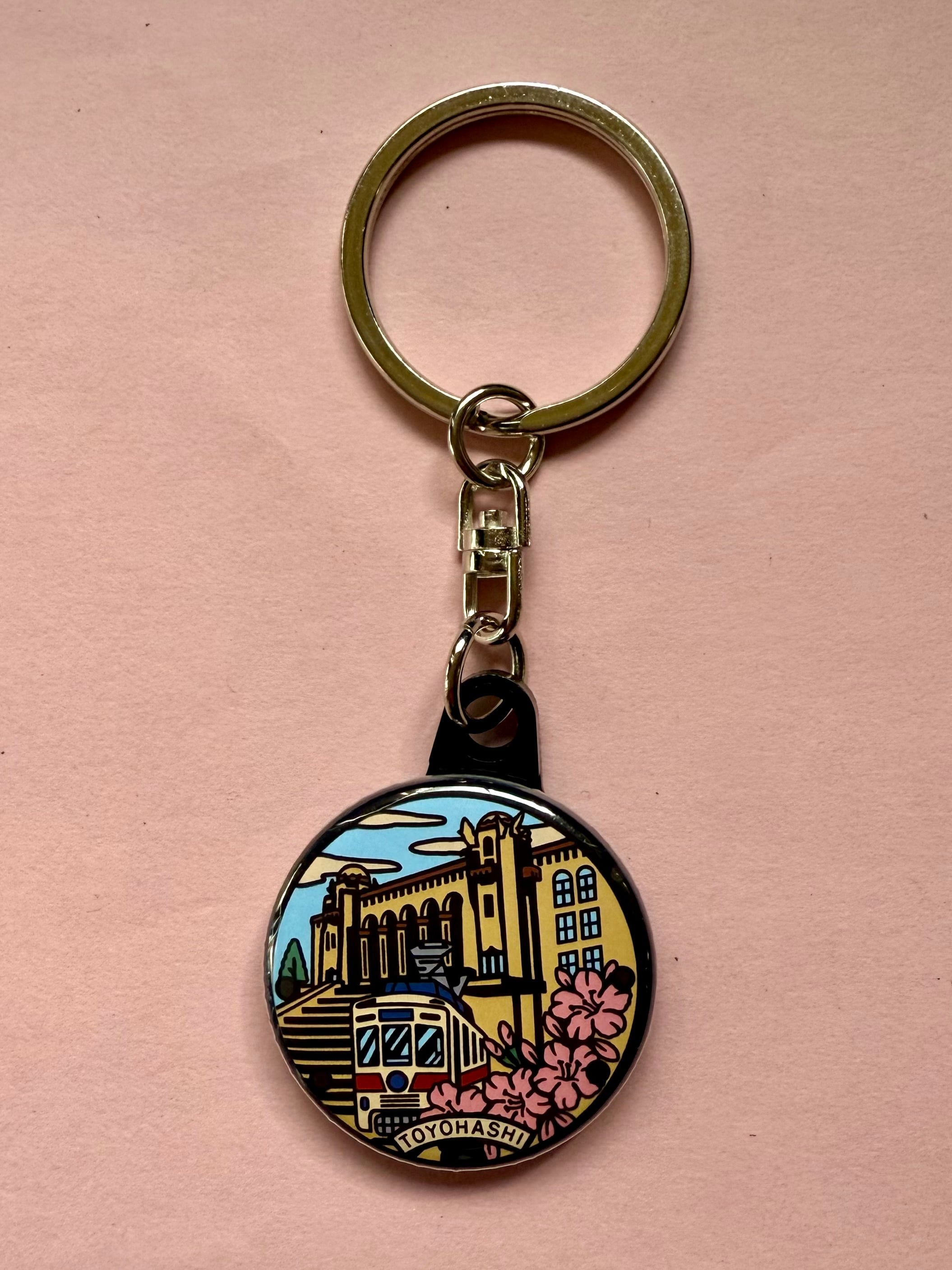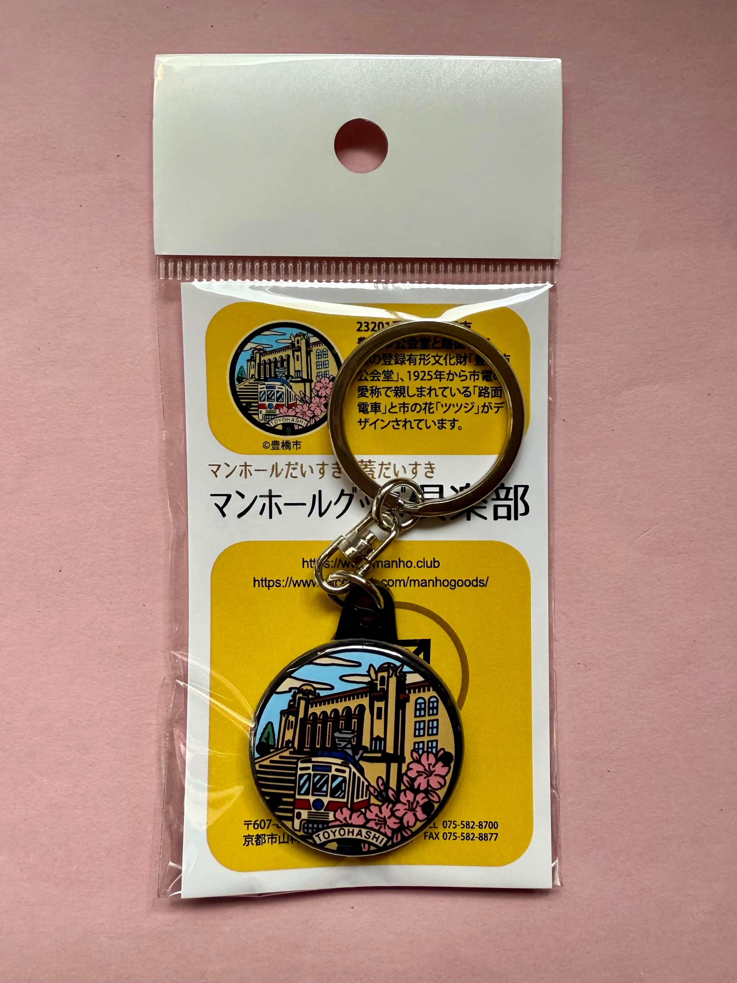 国の登録有形文化財「豊橋市公会堂」を背景に、1925年から市電の愛称で親しまれている「路面電車」と市の花である「ツツジ」がデザインされています。