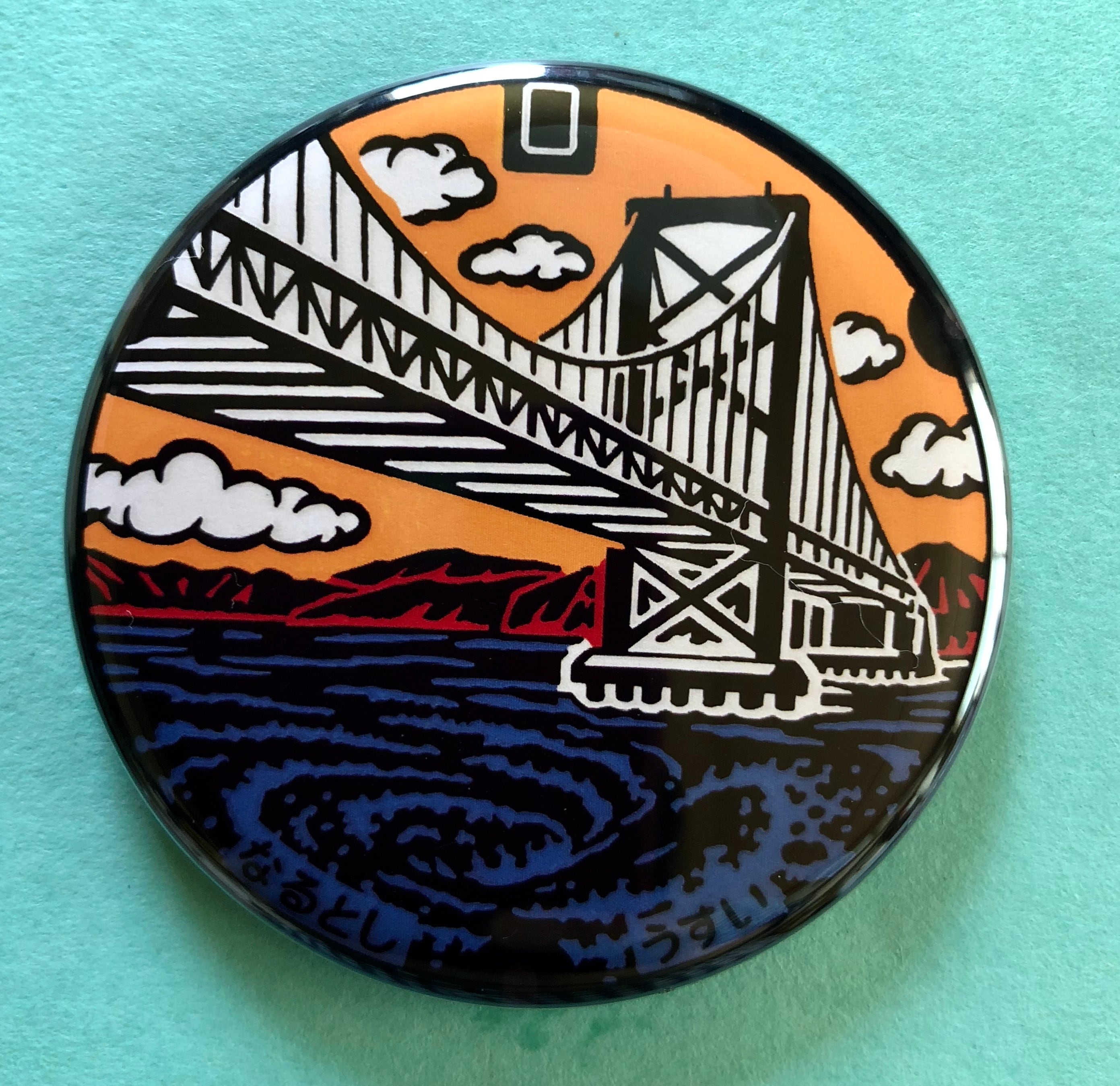「大鳴門橋」と「渦潮」がデザインされている雨水管のマンホールの蓋です