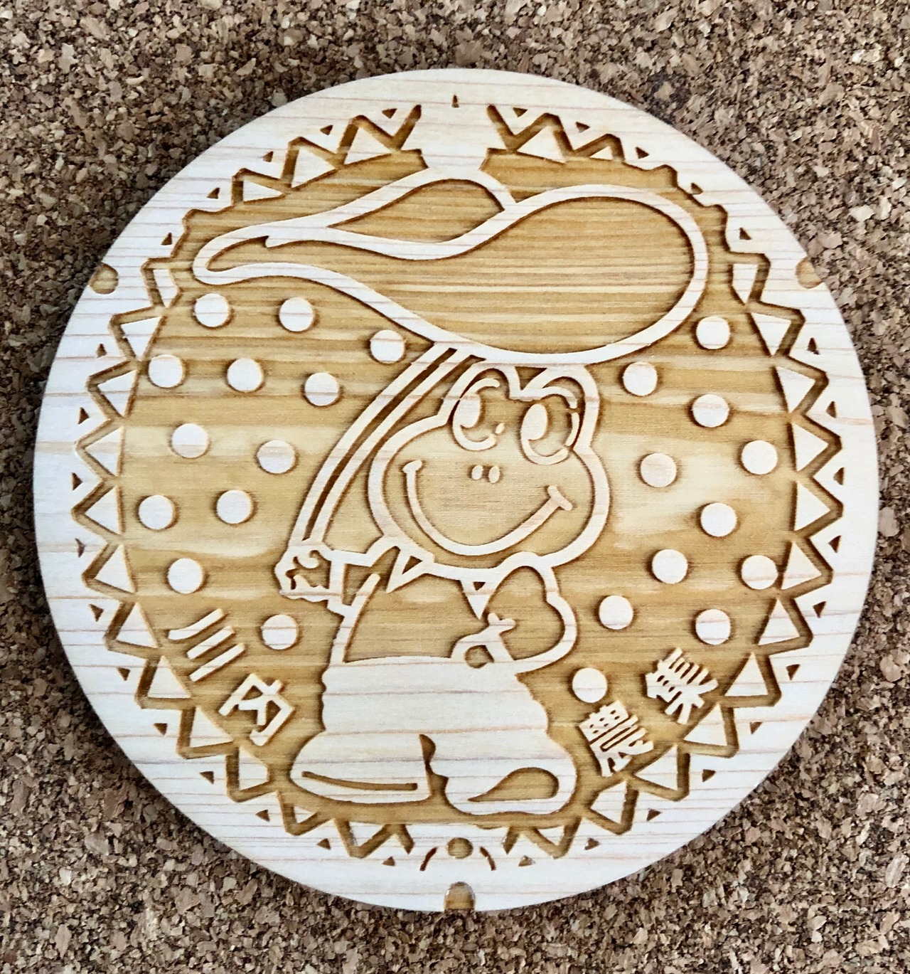 京都発京都産檜材に京都の工場でレーザー加工をおこなって作品に仕上げました