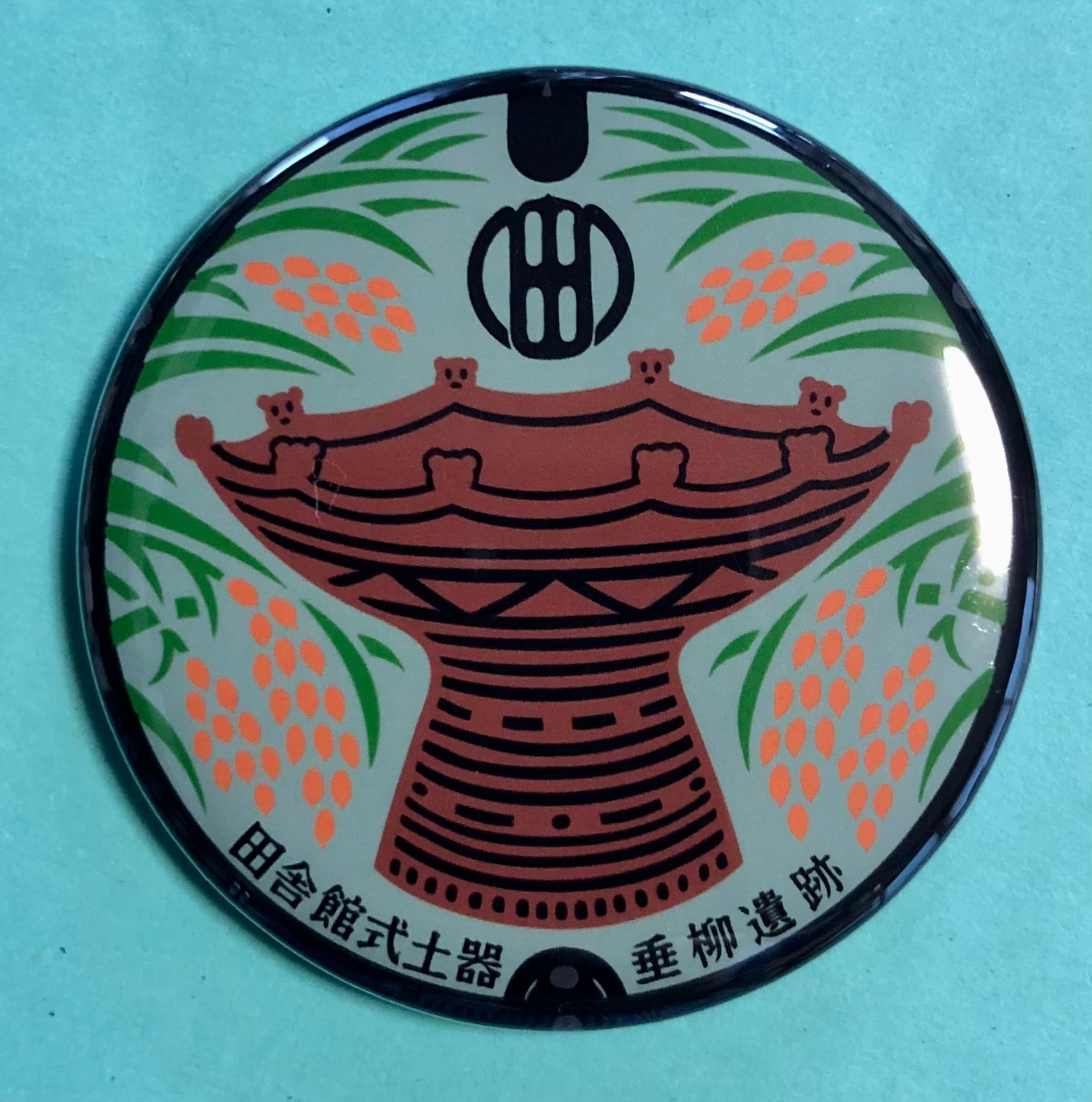 田舎館式土器と稲穂と村章
