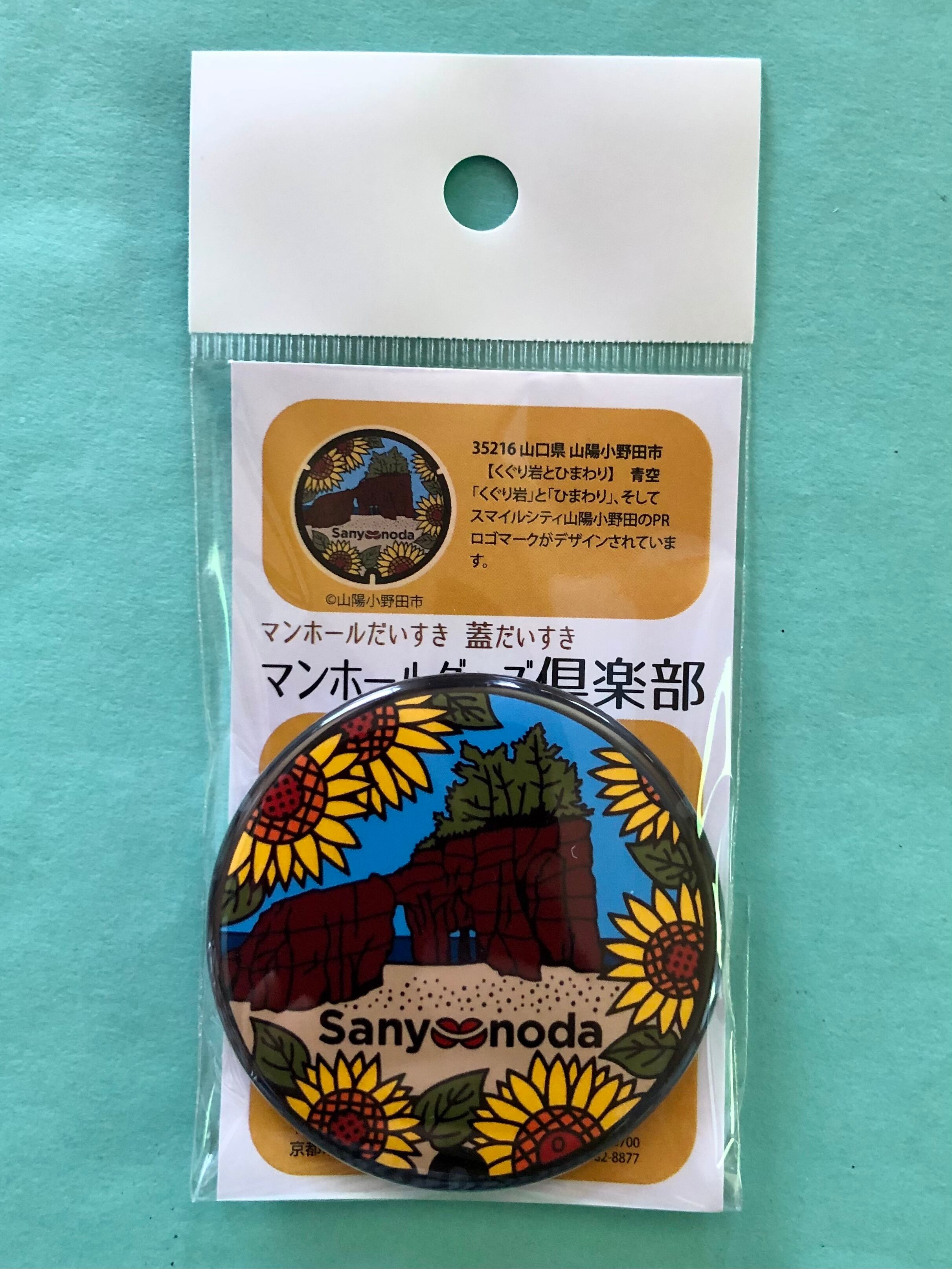「くぐり岩」と「ひまわり」、そして スマイルシティ山陽小野田のPRロゴマークがデザインされています。
